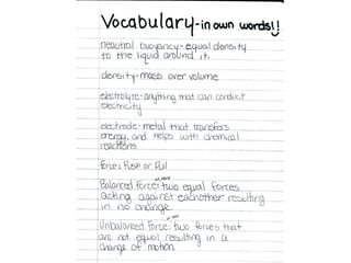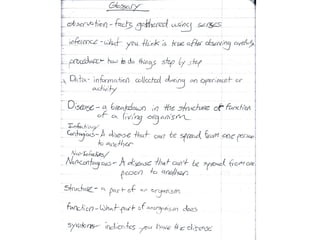 This document provides an overview of using interactive science notebooks in the classroom. It discusses research showing notebooks can be an effective assessment tool and means for students to develop a deep understanding of science concepts. Teachers are provided with strategies for implementing notebooks, including dividing the pages for student and teacher input, using writing frames and graphic organizers, and providing formative feedback through "drive-bys" and rubric scoring. Students benefit from notebooks by reinforcing understanding and developing clear thinking.