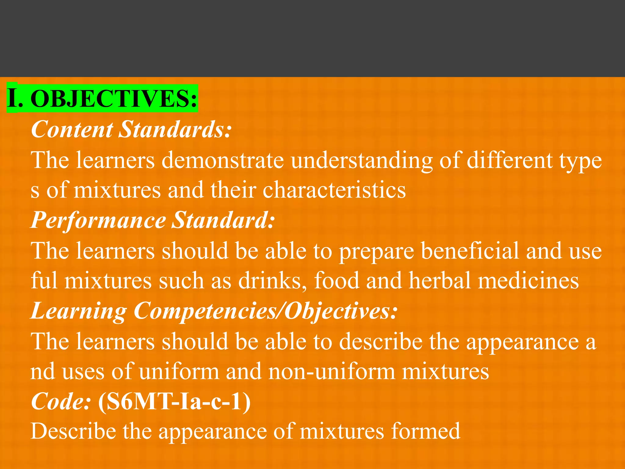 The document outlines the objectives, content, and learning resources for a lesson on mixtures presented by ANA EMELIA P. GALINDO. The objectives are for students to understand different types of mixtures, their characteristics, and how to prepare useful mixtures. The content describes uniform and non-uniform mixtures and their appearances. Various learning resources are listed including textbooks, multimedia presentations, and activity sheets.