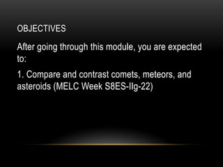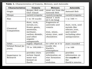 CHARACTERISTICS OF COMETS,METEORS, AND