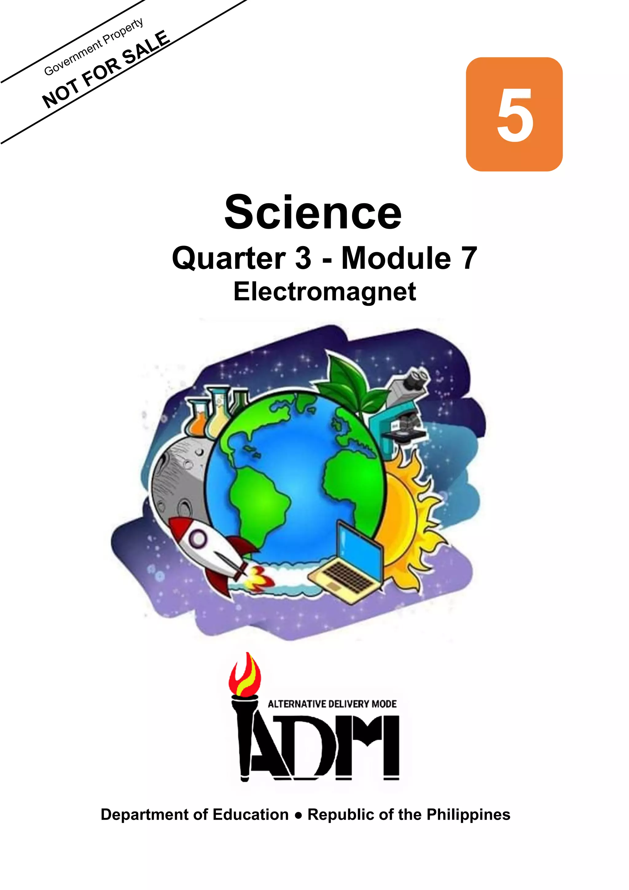 The document provides instructions for a science module on electromagnets for 5th grade students, including constructing an electromagnet, designing experiments to determine factors that affect electromagnet strength, and discussing the importance of magnets. The module contains 4 lessons, activities, questions, and assessments to help students learn about electromagnets and how electricity can produce magnetism.