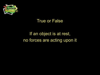 The document discusses forces, balanced and unbalanced forces, and calculating resultant forces. It defines a force as a push or pull and notes they have both magnitude and direction. Balanced forces are equal in size but opposite in direction and do not cause a change in motion, while unbalanced forces cause a change in motion. To calculate a resultant force, you take the difference between two forces acting in opposite directions. The document provides examples of calculating resultant forces and determining the direction of motion based on whether the forces are balanced or unbalanced.