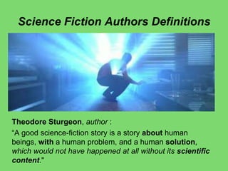 Science fiction films often explore themes of advanced technology, extraterrestrial life, and their implications for humanity. District 9 depicts aliens who have become refugees in Johannesburg, exploring themes of xenophobia and corporate exploitation. The film's protagonist Wikus undergoes a metaphorical transformation as he begins to empathize with the aliens after being infected by their technology. Major conventions of the science fiction genre seen in District 9 include an alien invasion/contact scenario, advanced alien weapons, and the portrayal of a powerful multinational corporation as an antagonist.