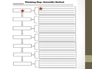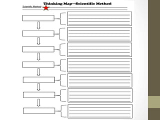 The scientific method involves making observations about the natural world, asking questions about those observations, forming hypotheses to answer those questions, experimenting to test those hypotheses, collecting and analyzing the resulting data, and drawing conclusions. The document provides an example of applying the scientific method to test the hypothesis that the McDonald's next to someone's house gives more fries than other locations by weighing fry orders from 5 McDonald's over several days and analyzing the average weights.