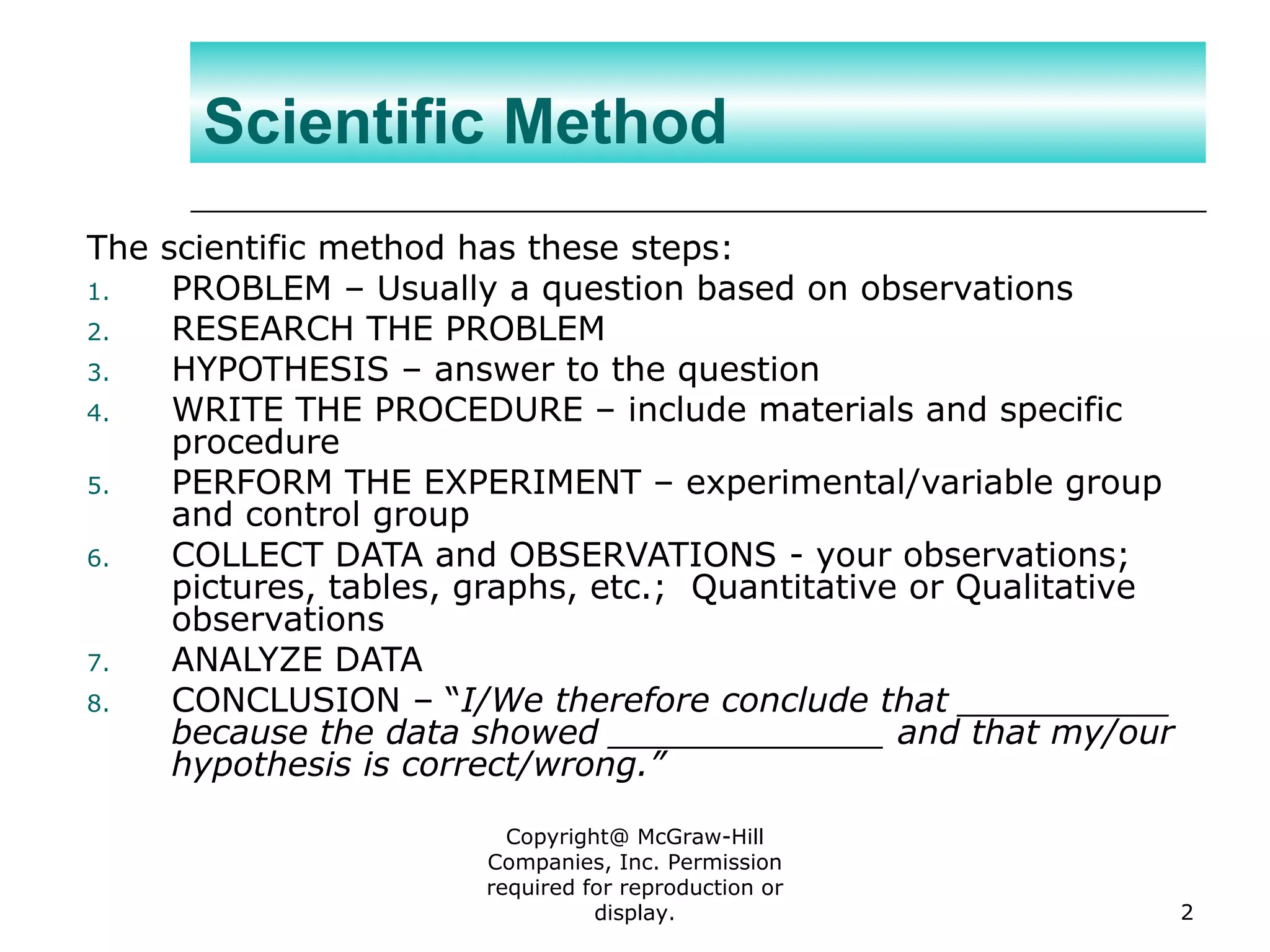 The document outlines the steps of the scientific method, which include identifying a problem, researching, forming a hypothesis, conducting experiments, collecting data, and drawing conclusions. It distinguishes between hypotheses, theories, and laws, and discusses aspects of experimental design such as independent and dependent variables, control groups, and the importance of data organization. Additionally, it provides examples of scenarios illustrating these concepts and highlights the historical context of scientific inquiry using the case of beriberi.