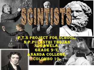 The document provides biographical details about several famous scientists including their names, dates of birth and death, key contributions and achievements. It discusses Michel Faraday and his work in electromagnetism, Albert Einstein and his theories of general and special relativity, Thomas Edison and his inventions including the phonograph and practical light bulb, and others such as Archimedes, Alexander Fleming, Marie Curie, Galileo Galilei, Johannes Kepler, and Alexander Graham Bell. The document contains hyperlinks to videos and images related to each scientist.