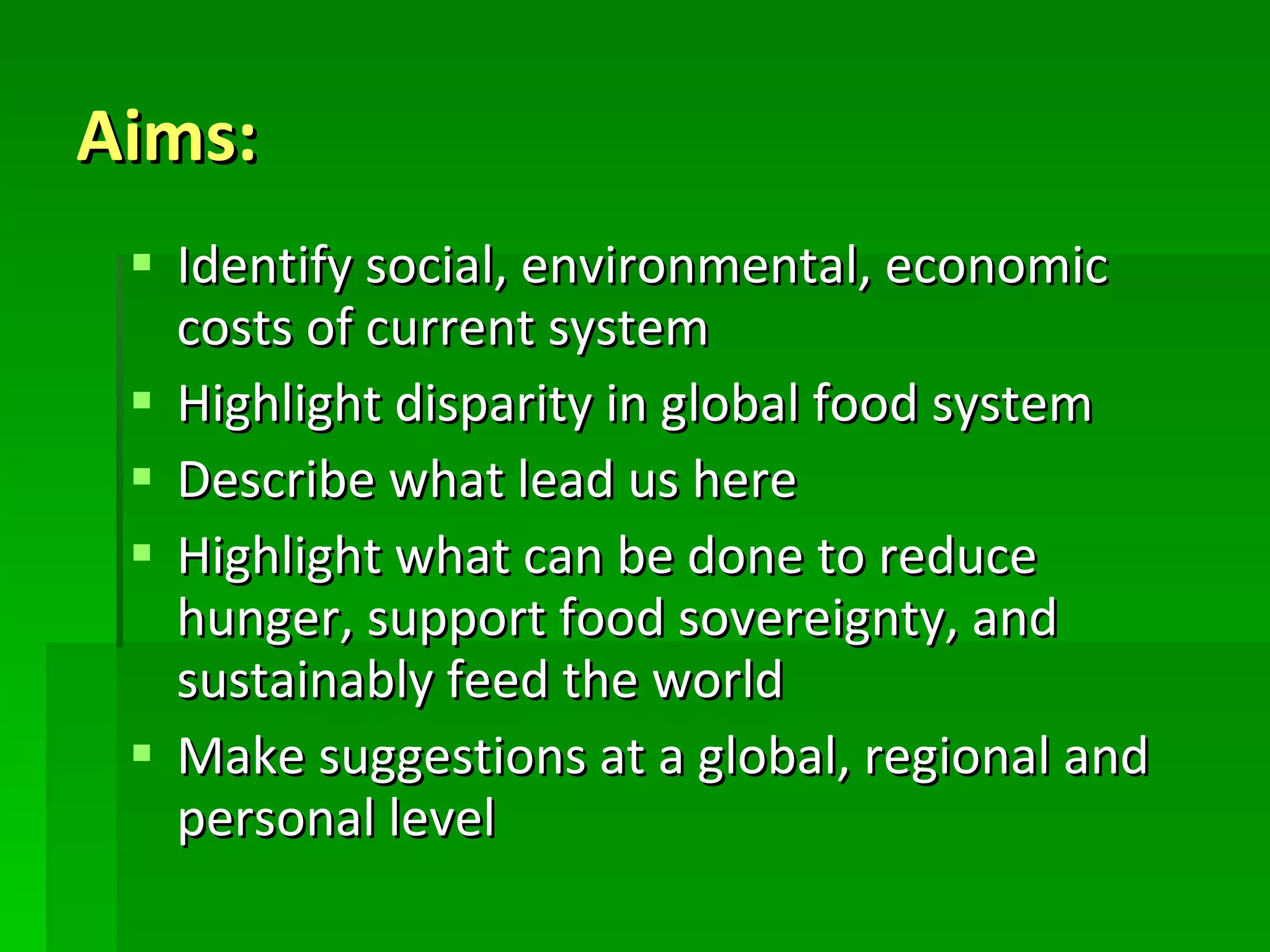 The document analyzes the global food system, highlighting the disparities and costs associated with industrial agriculture, food sovereignty, and the environmental impact of food production. It emphasizes the concentration of power in the market, leading to both food scarcity and obesity, and explores historical examples of how trade policies have disrupted local food systems. Recommendations include supporting sustainable agriculture practices, reforming agricultural policies, and promoting local food sovereignty to address these issues.