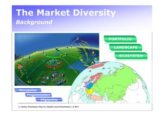 The document presents an analysis of the telecom infrastructure market, discussing market shares, competition dynamics, and consumer behavior. It highlights the challenges of measuring market performance due to various factors like timing, data asymmetry, and inefficiencies. Several tools and strategies are suggested for effective market mapping and understanding the ecosystem.