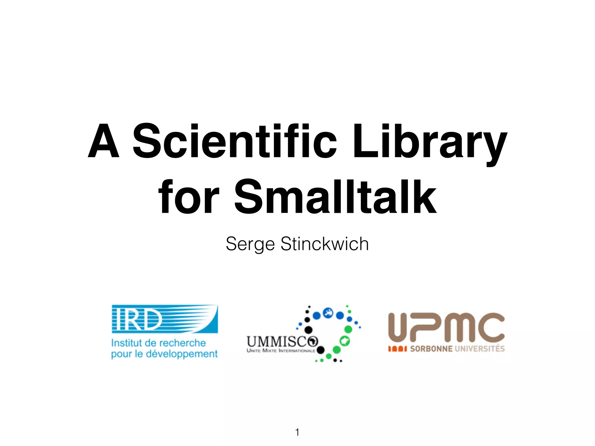 This document summarizes SciSmalltalk, an open-source library for scientific computing in Smalltalk. The library contains packages for numerical methods like matrices, statistics, polynomials, integration, and differential equations. It has over 600 unit tests and supports Pharo and Squeak. The library is developed and maintained by contributors from various universities and has been in development since 2012. Future plans include improving modularity and packaging, reproducing R examples in Roassal, and welcoming new contributions.