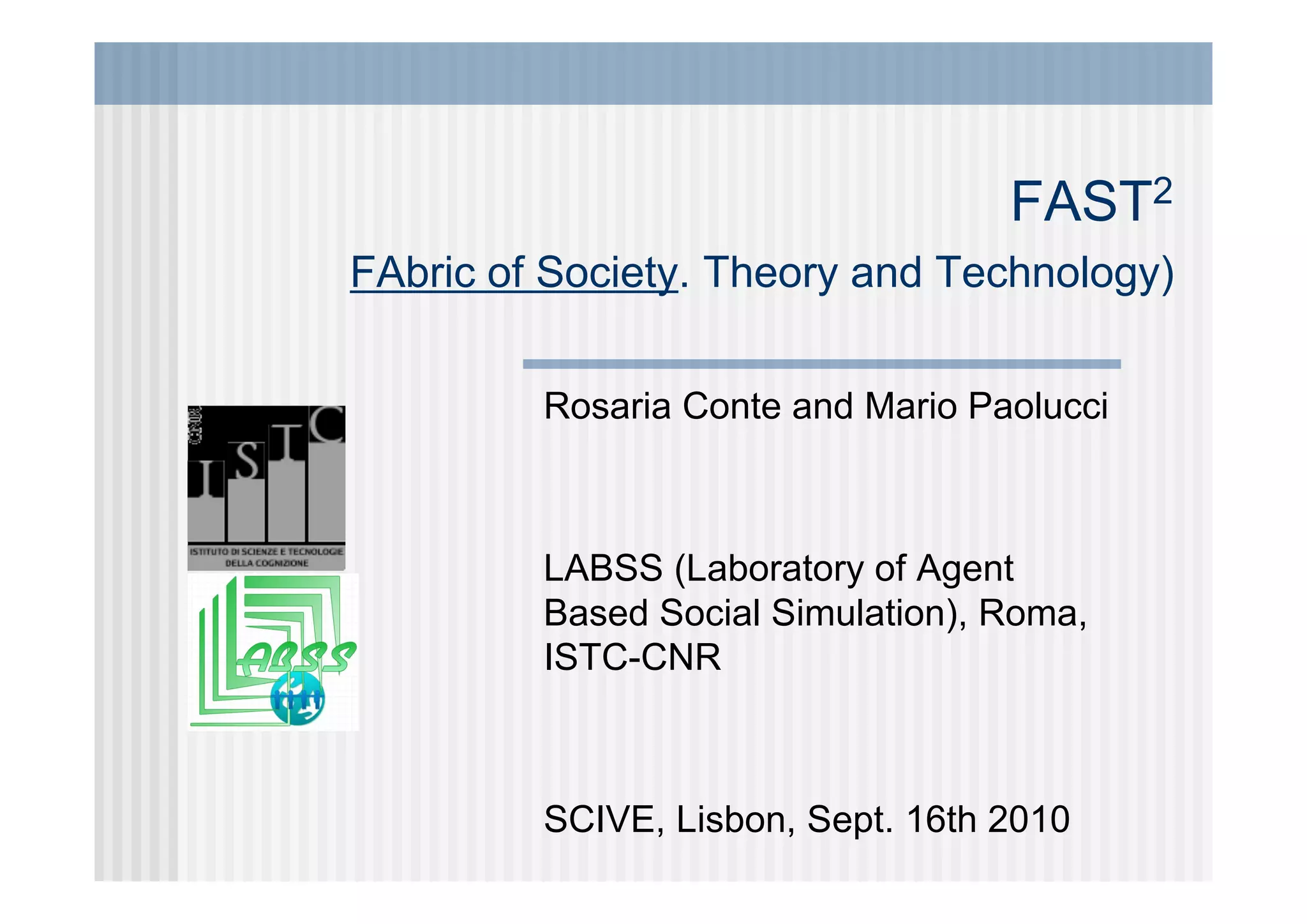 This document summarizes a presentation given by Rosaria Conte and Mario Paolucci on social simulation theory and tools. It discusses: