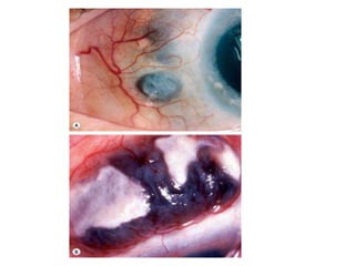 Scleritis and episcleritis affect the layers of the sclera and surrounding tissues. Episcleritis is usually benign and recurrent, occurring as either simple or nodular types. Scleritis can be anterior and non-necrotizing, nodular, or necrotizing. Complications of scleritis include keratitis, uveitis, glaucoma, hypotony, and perforation. Treatment involves topical steroids, NSAIDs, immunosuppressants, or antibiotics depending on the type and cause.
