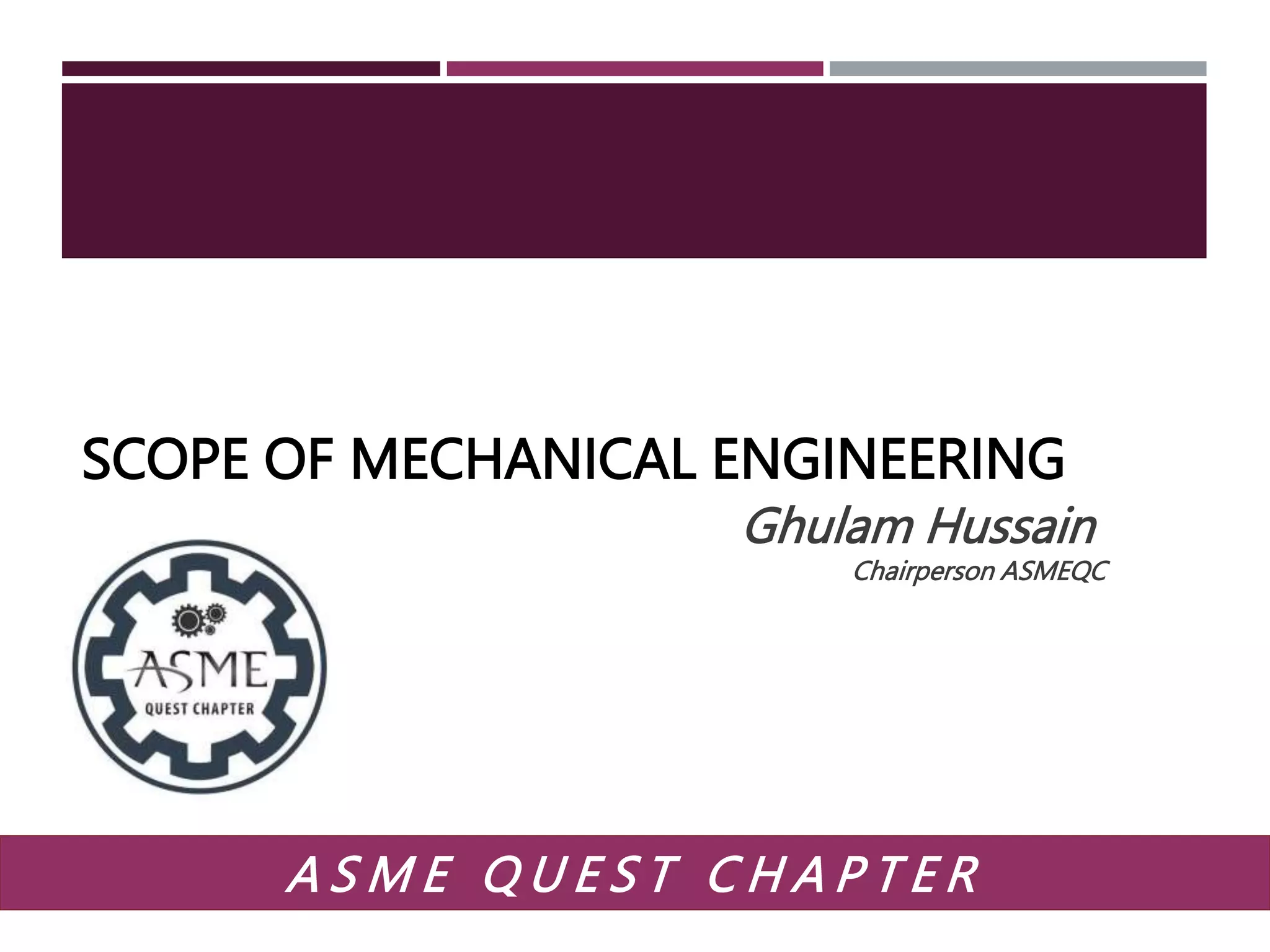 The document discusses the scope and opportunities within mechanical engineering, advising individuals to assess their passion and skills when considering this field. It highlights various industries where mechanical engineers can work and the diverse roles available, such as design, production, and project engineering. Moreover, it emphasizes the importance of gaining practical experience and skills to enhance employability post-graduation.