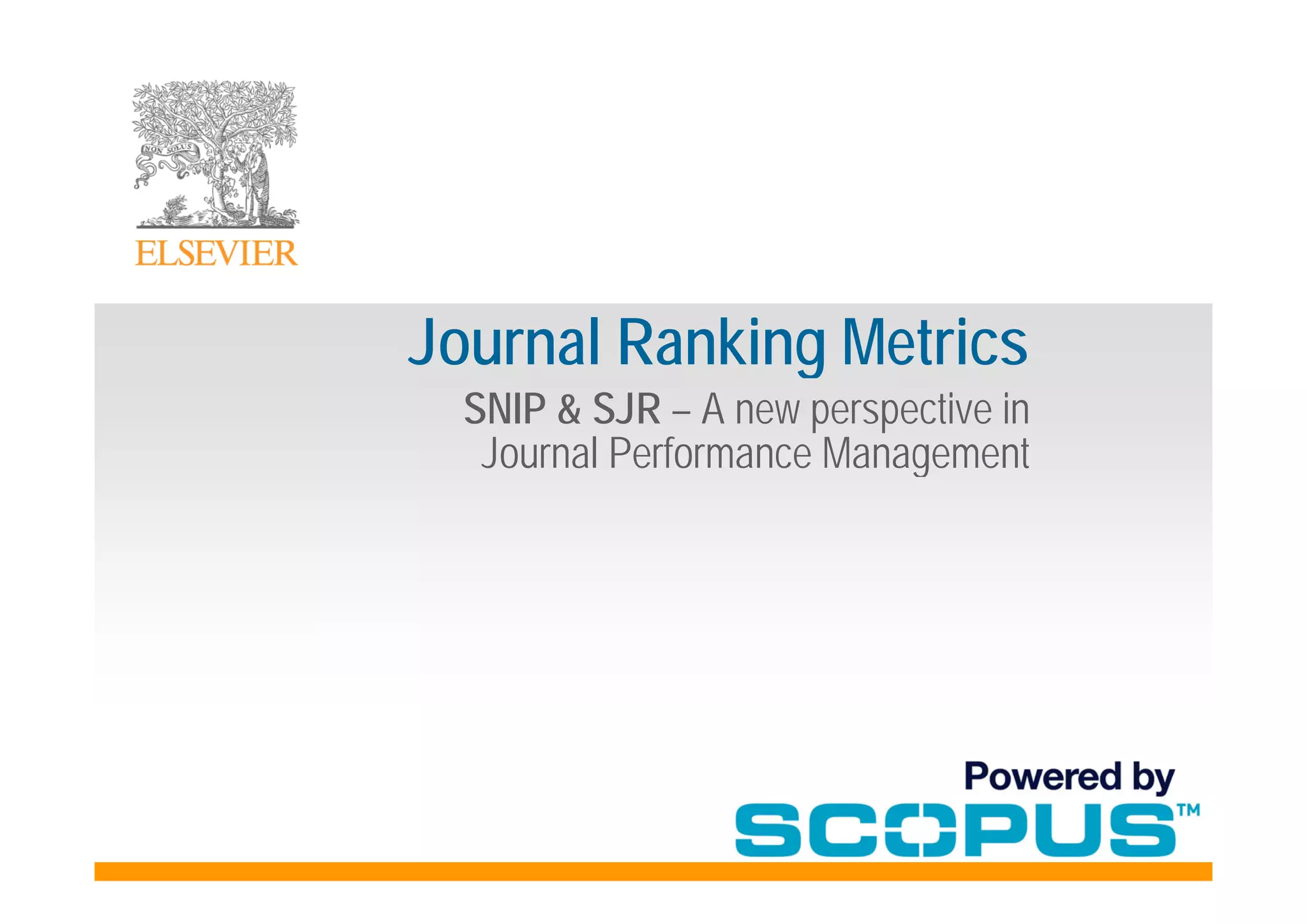 The document discusses the limitations of using traditional impact factors to evaluate journal performance and introduces alternative metrics like SJR (Scimago Journal Rank) and SNIP (Source Normalized Impact per Paper). These metrics aim to provide a more nuanced view of journal quality by considering citation behavior and database coverage differences across various fields. The adoption of these metrics is anticipated to enhance collaboration among publishers and facilitate better research assessment practices.