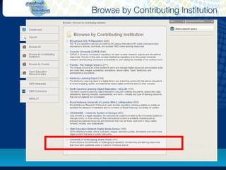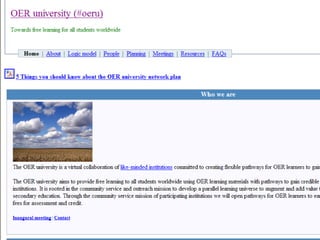 1. The document discusses the history and current state of open educational resources (OER) in Australia, including a focus on sharing resources nationally in schools, vocational education, and higher education.