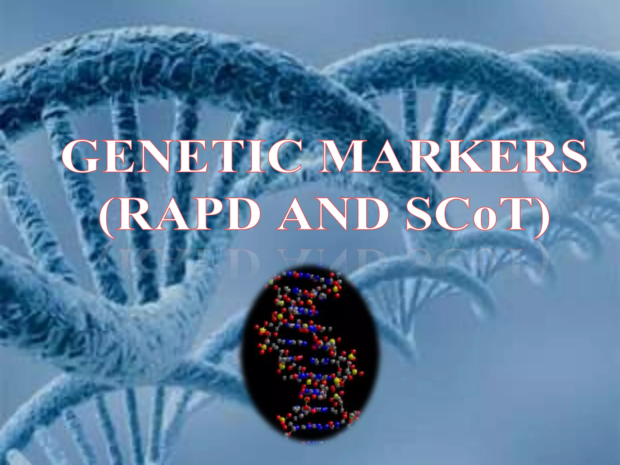 The document discusses genetic markers, particularly focusing on RAPD and SCOT techniques used in molecular biology for gene mapping and identification. RAPD, developed in the 1990s, is a PCR-based method with low costs and no need for species-specific probes, while SCOT is simpler and more reliable, utilizing longer primers for higher polymorphism. Both techniques are useful for applications in plant breeding, genetic diversity analysis, and QTL mapping.
