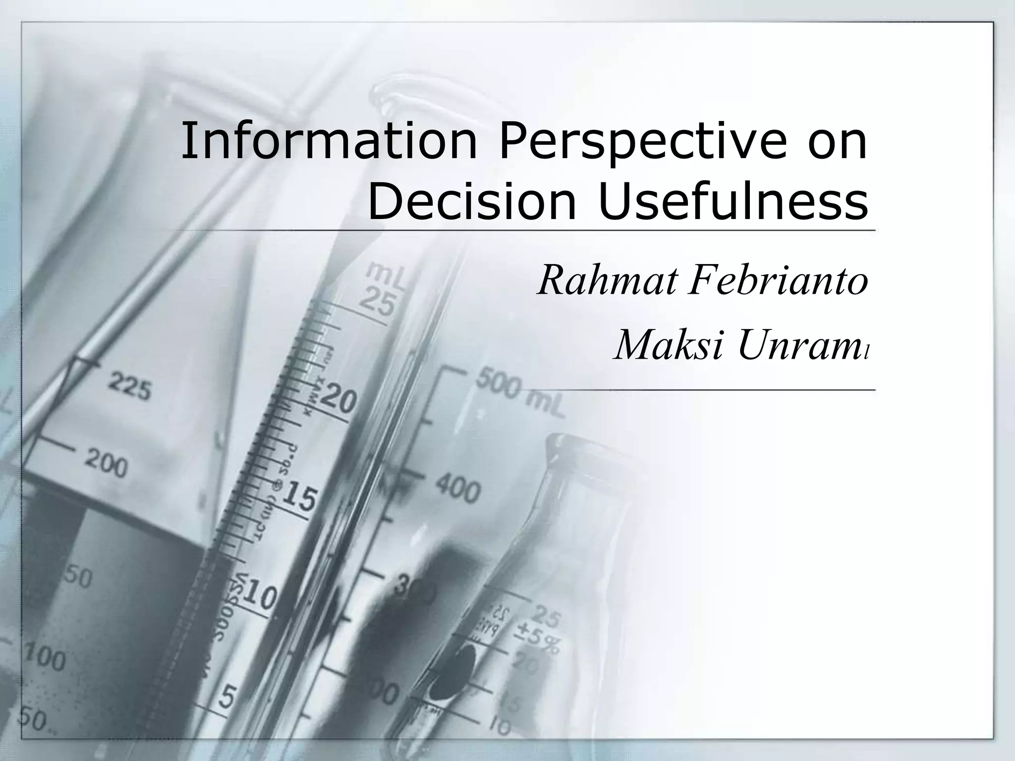 Dokumen ini membahas perspektif informasi pada keputusan akuntansi yang menekankan pentingnya penyediaan informasi yang berguna untuk memprediksi kinerja masa depan perusahaan. Penelitian menunjukkan bahwa pasar bereaksi cepat terhadap informasi baru, mempengaruhi volume perdagangan dan harga saham, serta menyentuh aspek-aspek metodologis dan respon pasar yang beragam akibat dari berbagai faktor. Selain itu, terdapat implikasi terhadap pengungkapan informasi oleh perusahaan dan keberatan terkait kebijakan akuntansi yang mencakup biaya dan dampak sosial.