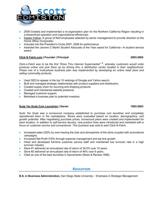 The document is a resume for Saed Miston that summarizes his experience and skills. It includes over 20 years of experience solving problems and implementing solutions to grow revenue and profit. Miston has a proven track record of leading teams, developing marketing plans, and improving business performance. He has experience turning around underperforming businesses and setting sales records.