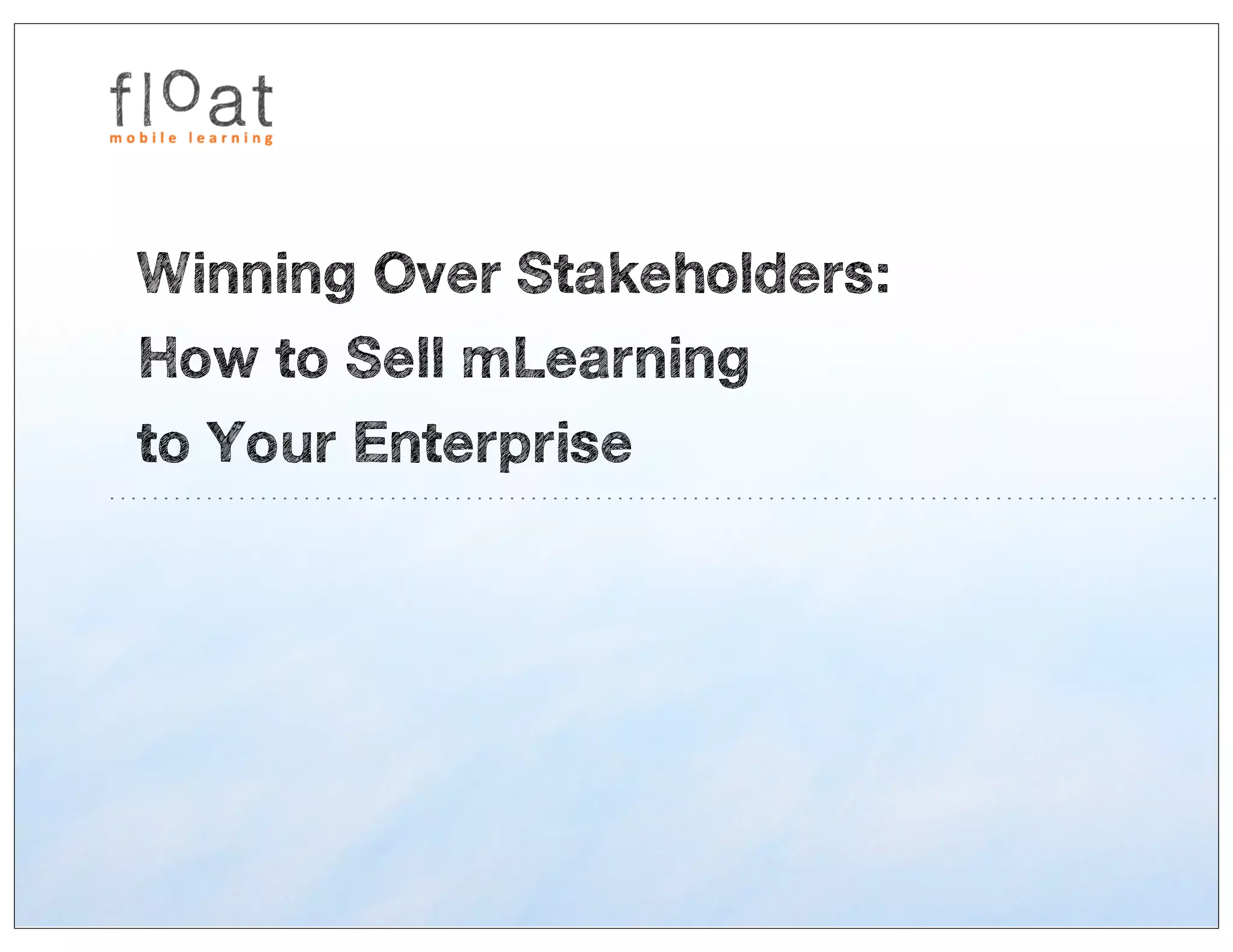 The document discusses strategies for gaining stakeholder support for mobile learning (mLearning) initiatives within organizations. It emphasizes the importance of identifying key stakeholders, establishing a strong business case, and following a structured process for implementation. The document also highlights the benefits of mLearning, such as reduced training costs and improved training efficiency.