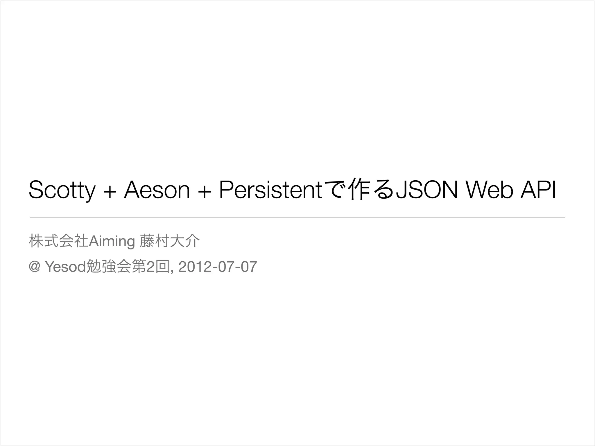 Showcase Drupal as a API Server at API Meetup 2015/05/22 Scotty + Aeson + Persistentで作るJSON Web API