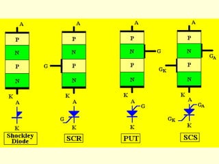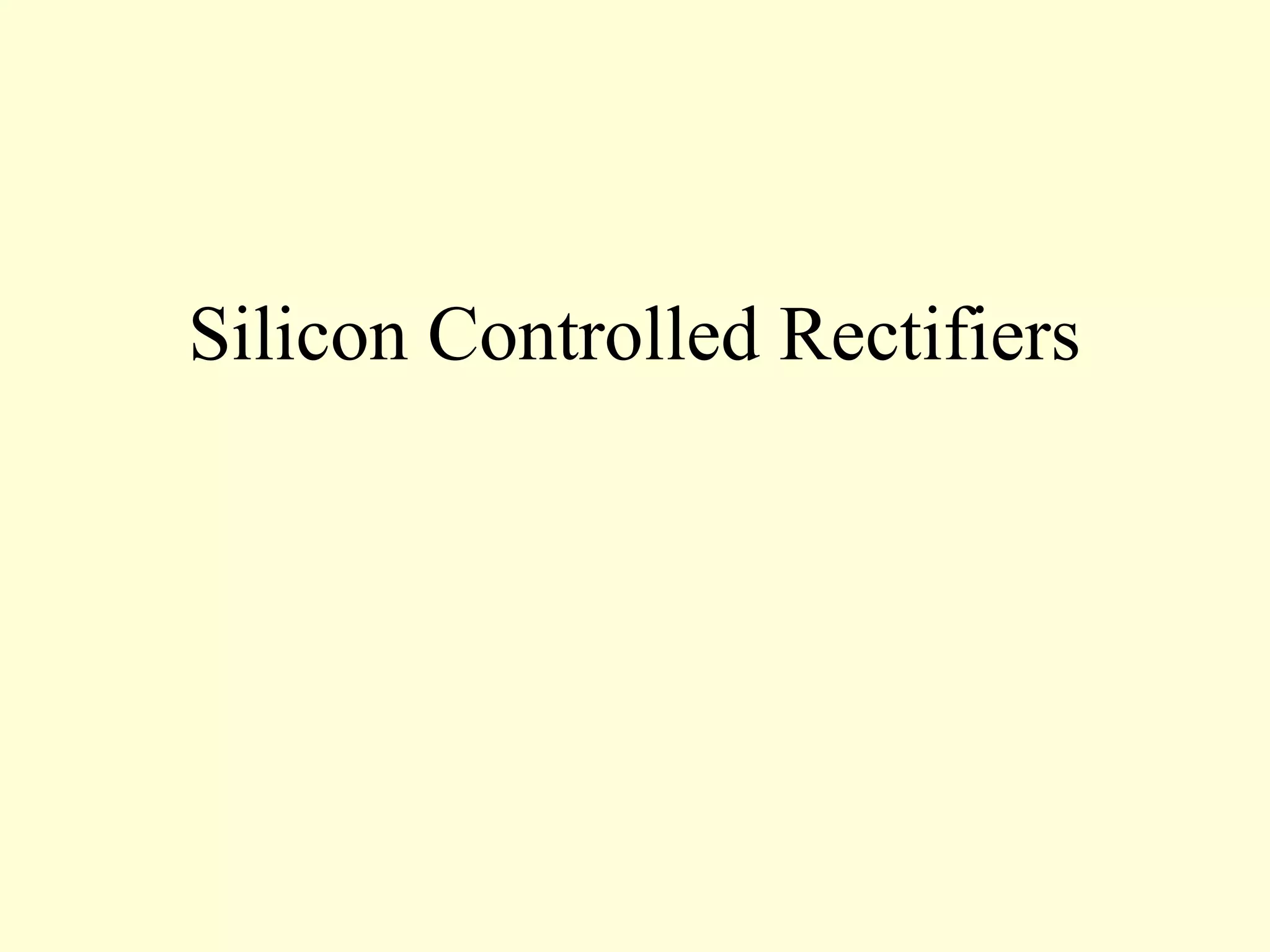 An SCR (Silicon Controlled Rectifier) is a solid state semiconductor device that controls current flow through its four layers. It functions like a conventional rectifier but is controlled by a gate signal. When the gate receives a threshold voltage, the SCR turns on and conducts current in a forward conducting mode. SCRs are commonly used to produce DC voltages for motors by rectifying AC line voltage through half-wave or full-wave rectification.