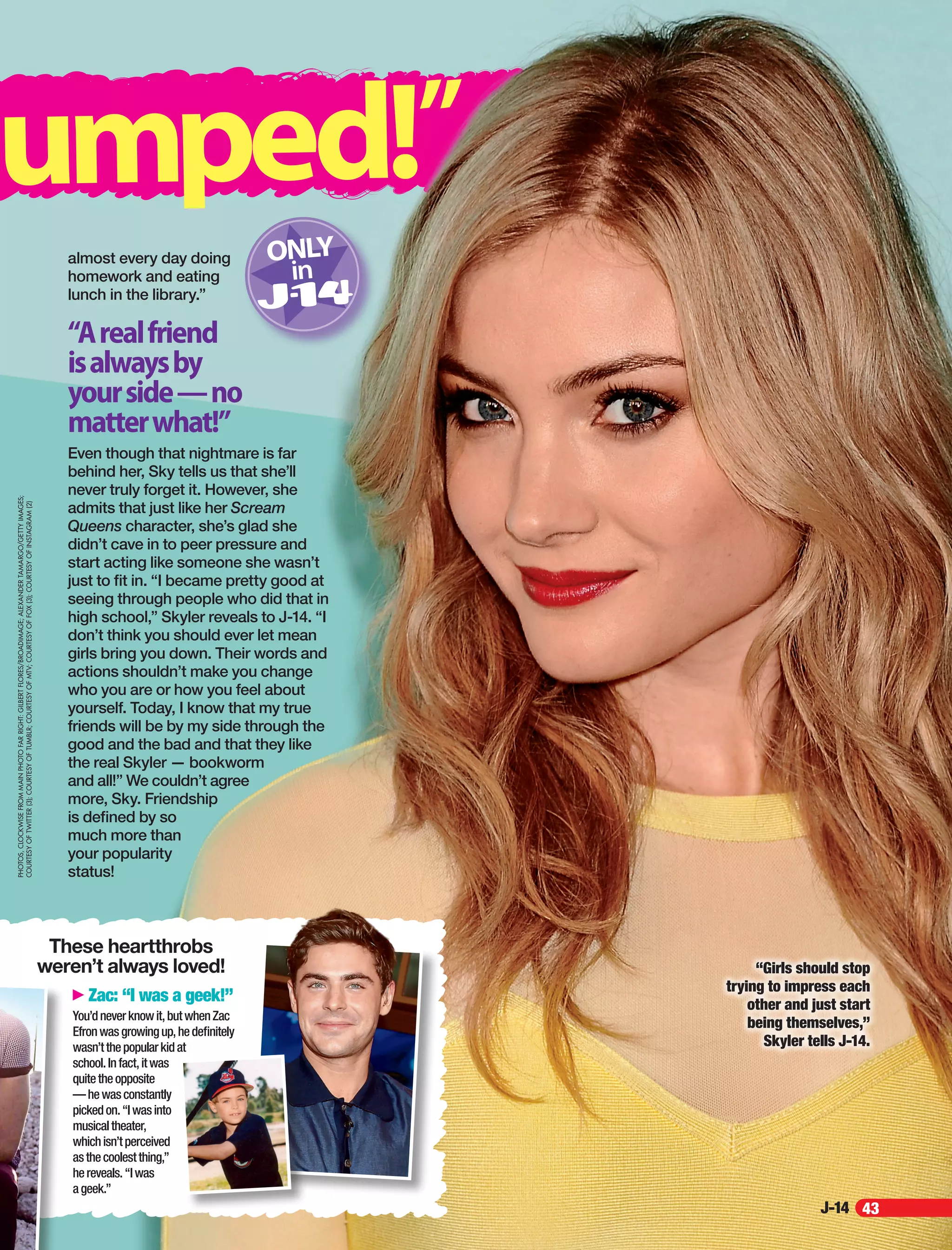 Skyler Samuels' character on Scream Queens and her own high school experience both involved dealing with mean girls who isolated her. In high school, Skyler felt confused when her friends started acting differently to impress the popular clique and she was eventually "friend-dumped" for not being cool enough. This was a difficult time for Skyler and she spent her days as the self-proclaimed "awkward nerd." However, she is glad she didn't change who she was to fit in and knows that true friends accept you for who you are.