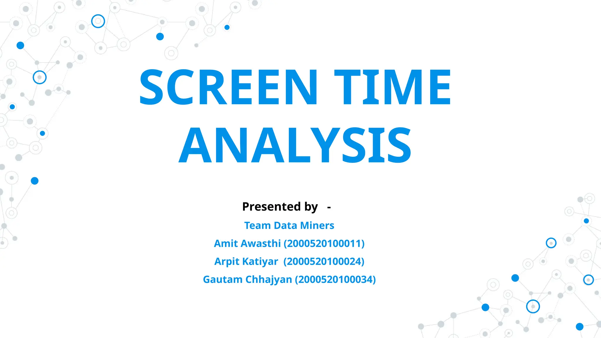 The document presents a screen time analysis performed by a team, focusing on user app and website usage metrics. It details the objectives, dataset characteristics, and the analytical methodology using Python, highlighting the relationship between notifications and screen time. The findings reveal a linear correlation indicating that more notifications lead to increased smartphone usage.