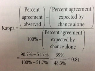 This document discusses the evaluation of diagnostic tests. It defines key terms used to evaluate tests such as sensitivity, specificity, predictive values, and likelihood ratios. It provides examples of evaluating a fine needle aspiration test for breast cancer using these measures. The document also discusses how prevalence of a disease can impact predictive values and compares two-stage versus simultaneous testing approaches.