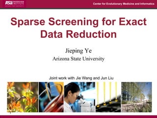 The document discusses the development of exact data reduction techniques using sparse screening methods for both feature and sample reduction, specifically through lasso and support vector machines (SVM). It highlights the efficiency of these approaches in maintaining model integrity while significantly speeding up processing times. Additionally, the document presents various optimization algorithms and extensions of sparse screening to broader applications in machine learning and data science.