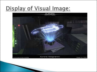 The document discusses screenless display technology as an emerging replacement for traditional touch screen displays. It describes several types of screenless displays including visual images like holograms, retinal displays that project images directly onto the retina, and synaptic interfaces that send images directly to the brain. While screenless displays provide advantages over traditional screens like 3D images and lower costs, the technology still faces challenges such as higher costs and limited availability of products, and potential health issues from close interaction with the eye.