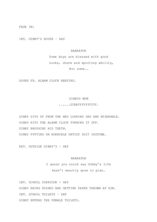 Gibby is a socially awkward boy who is unpopular in school, lacking in athletic ability and fashion sense. His friends Lynn, Joe, and Zach are more popular and skilled in sports, driving, and fashion. To help Gibby become cooler, his friends encourage him to talk to a girl at the pub, but he collapses from nerves before reaching her. The film will follow Gibby's journey as his friends try to help him gain confidence and popularity.