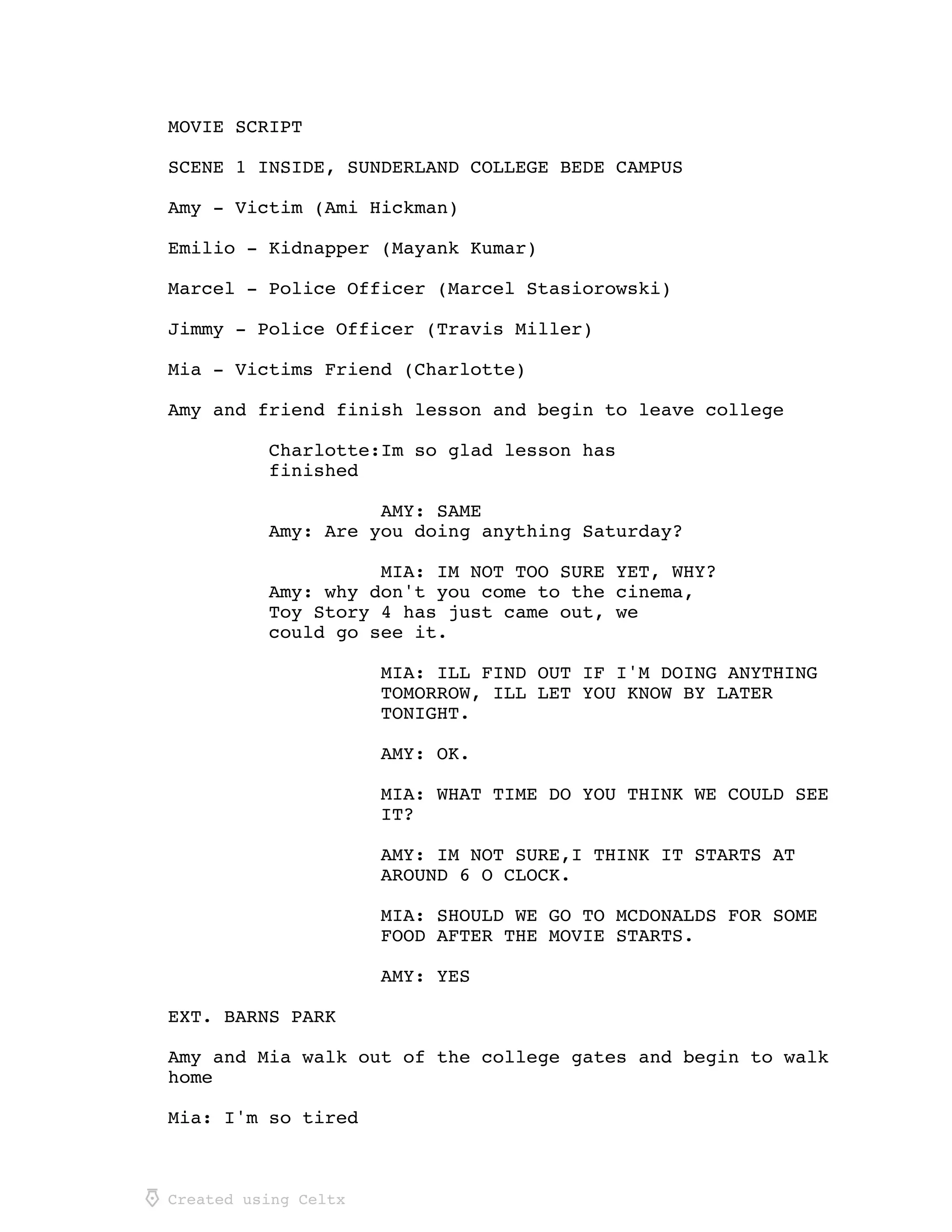 Amy is kidnapped by a strange man after leaving college. She wakes up bound in an abandoned building with her kidnapper. Amy is able to escape by knocking him out with a bat. She calls the police and hides while waiting for help. When the kidnapper wakes up, Amy hides from him until police sirens are heard. Amy runs for help and the kidnapper is arrested.