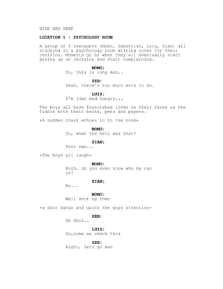 1. Four teenagers - Momo, Sebastian, Luis, and Zian - get frustrated while studying and decide to play a game of hide and seek to take a break.
