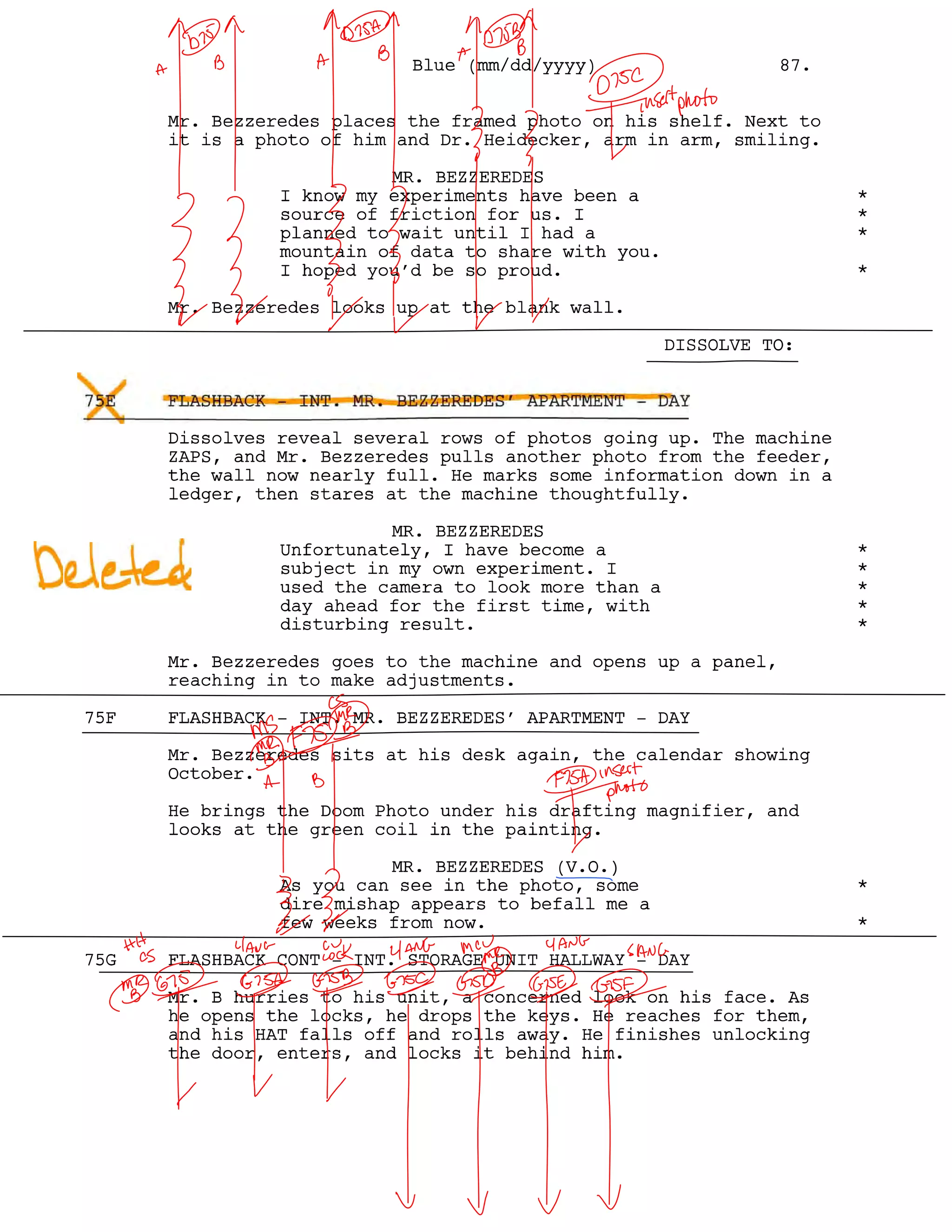 The document is a script supervisor's daily log providing information on shots filmed that day for a production, including scene and tracking numbers, time, camera and sound used, lens, comments, and descriptions of shots. It documents the filming progress and provides essential information for the editor.