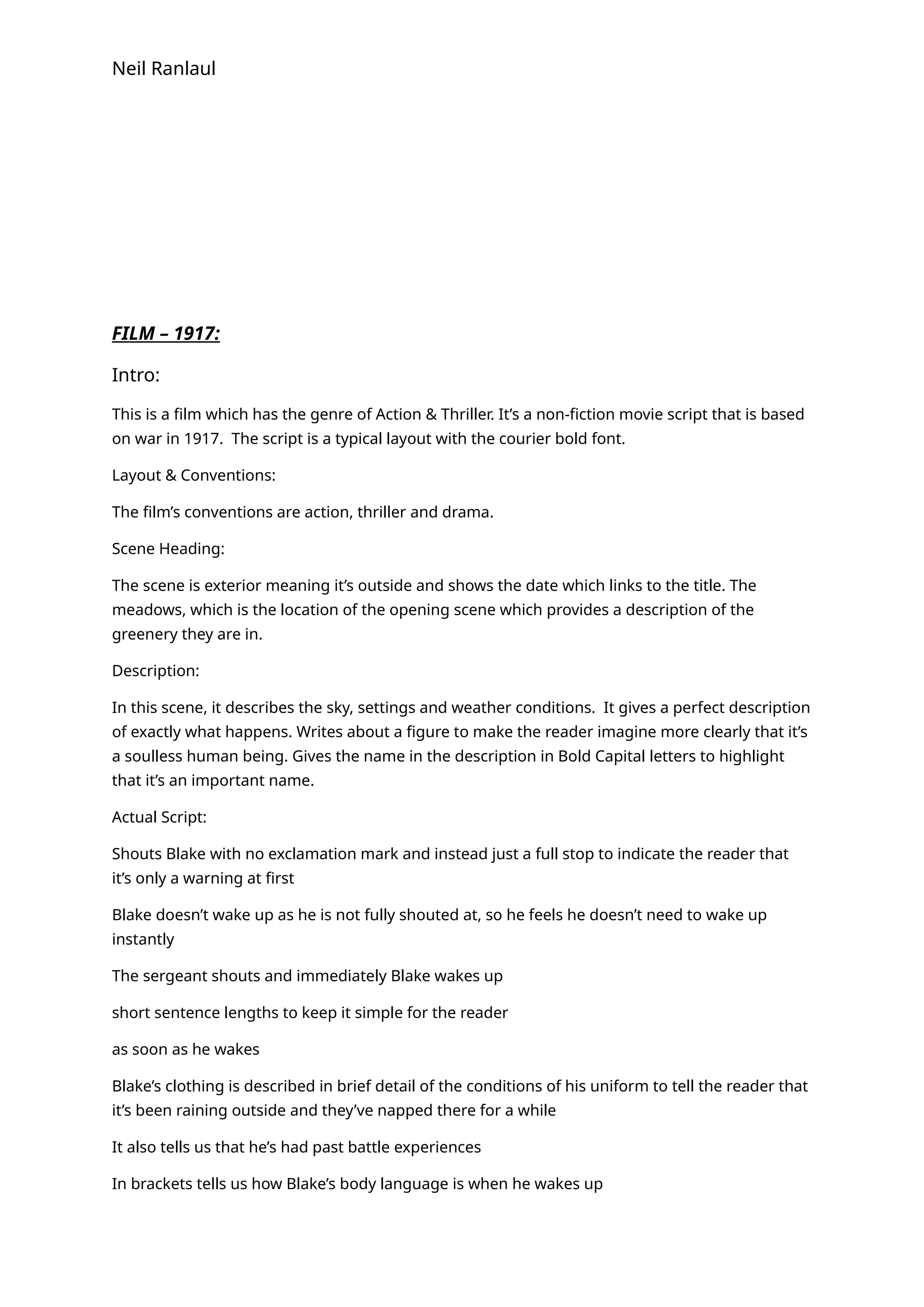 The script is then continued after Blake responds to his Sergeant to indicate that he is still