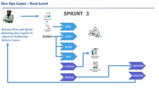 The document provides an overview of Agile, Scrum, and DevOps principles and processes. Some key points: