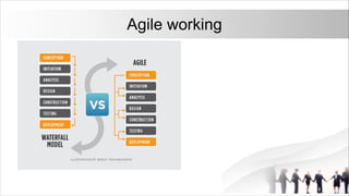 The document outlines key concepts and practices of Scrum and DevOps foundational training, detailing the roles of Scrum Master, Product Owner, and the cross-functional team dynamics essential for effective software development. It emphasizes the importance of sprints, sprint planning, reviews, and retrospectives in managing the product backlog and maximizing value through user stories. Furthermore, it discusses team structure and a burndown chart for tracking progress during sprints.