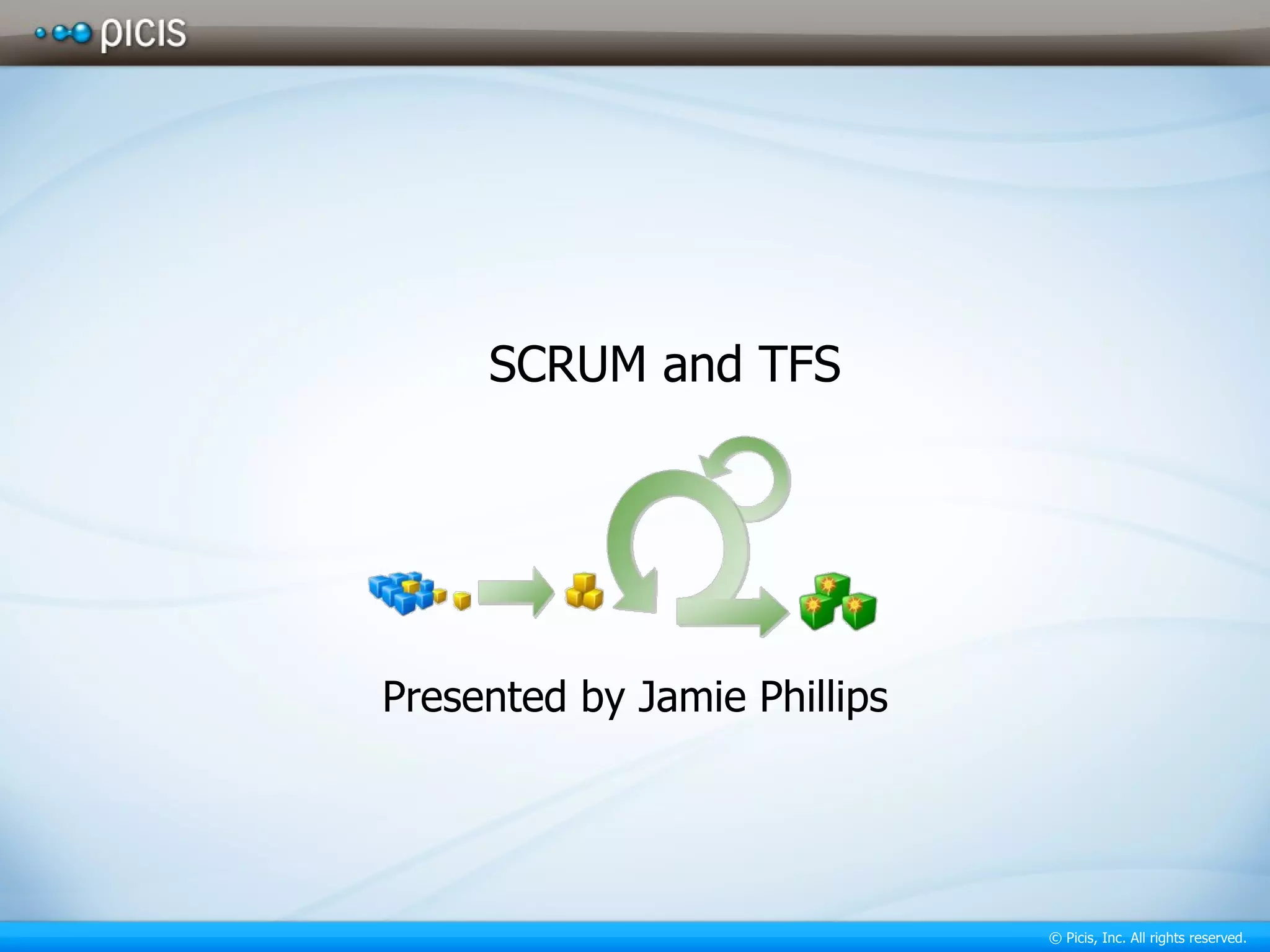 The document introduces Jamie Phillips, a senior software engineer with over 10 years of experience, and describes his association with Picis, a provider of clinical information solutions. It outlines the Scrum framework, detailing the roles of the product owner and scrum master, the importance of product and sprint backlogs, and the processes involved in sprint planning, daily scrums, and retrospectives. Additionally, it mentions tools used in agile project management, such as Team Foundation Server and Quality Center for story creation and tracking.