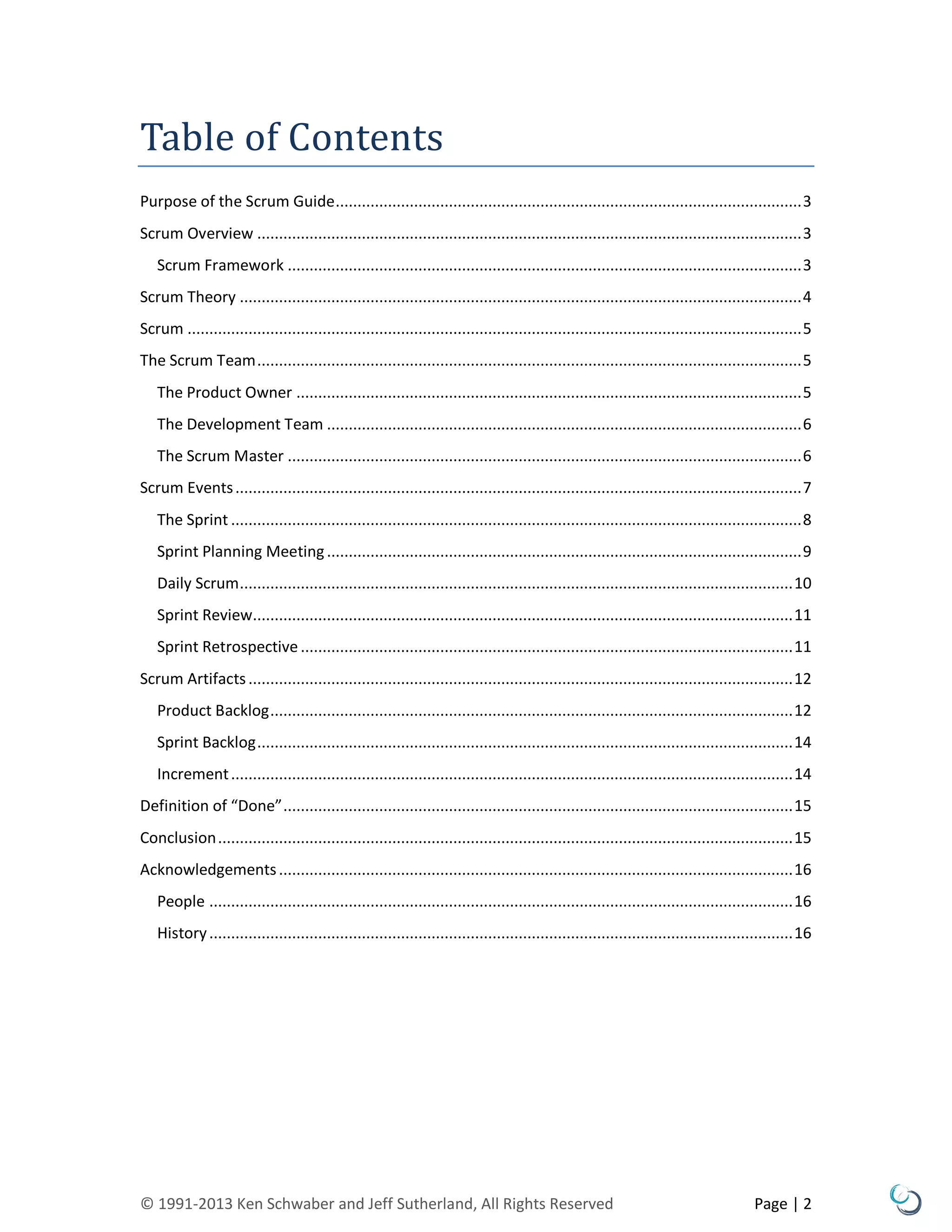 The Scrum Guide outlines the Scrum framework, developed by Ken Schwaber and Jeff Sutherland, which is used for managing complex product development. It details the roles (Product Owner, Development Team, Scrum Master), events (Sprints, Sprint Planning, Daily Scrum), and artifacts that govern the Scrum process, emphasizing the importance of transparency, inspection, and adaptation for effective product delivery. By following these guidelines, Scrum teams can produce high-value products iteratively and incrementally while fostering collaboration and self-organization.