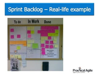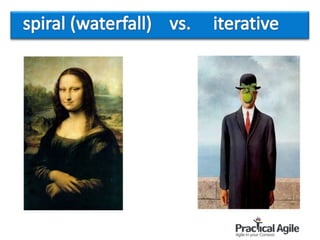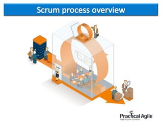 This document provides an overview of an introductory training session on Scrum. It describes the various activities and sections of the training, including an introduction by the trainer, exercises and games to illustrate Scrum concepts, breakout groups to form teams, and discussions of Scrum roles, ceremonies, and artifacts. The training aims to explain the basics of the Scrum framework in an interactive way using examples, activities, and visuals to engage participants.