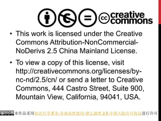 本作品采用知识共享署名-非商业性使用-禁止演绎 2.5 中国大陆许可协议进行许可