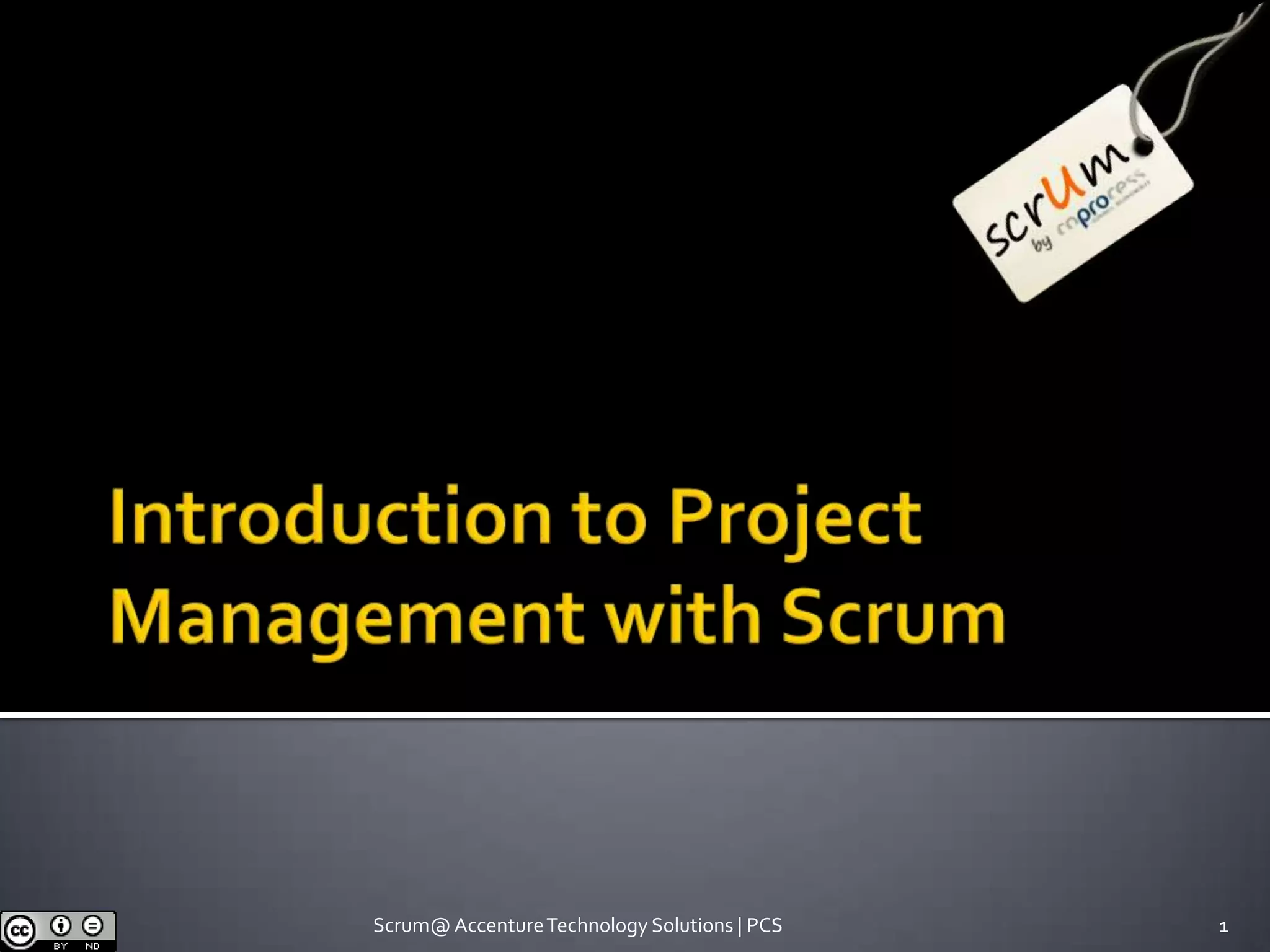 This document provides an introduction to project management using Scrum. It explains the basic Scrum framework, including roles like the Product Owner, Scrum Master, and self-managed team. The Scrum process is described as a series of time-boxed ceremonies like Sprint Planning, Daily Scrums, Sprint Review and Retrospective. The goal of Scrum is to maximize value through principles of transparency, inspection and adaptation within a flexible, holistic framework. An exercise demonstrates planning a marketing campaign using Scrum techniques.