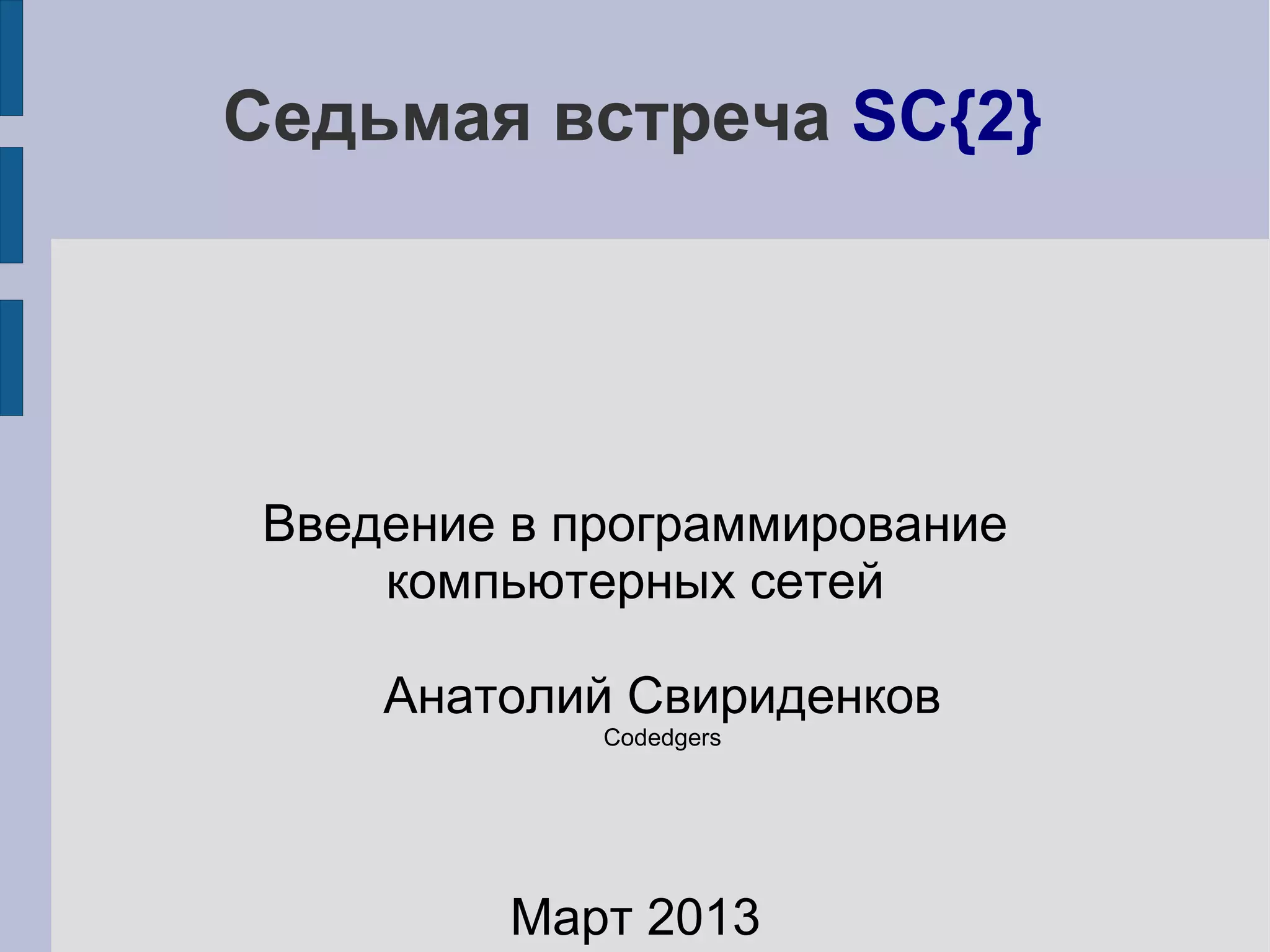 Документ представляет собой вводный материал по программированию компьютерных сетей, освещая основные типы связи и методы коммутации, такие как канальная и пакетная. Обсуждаются протоколы, включая UDP и TCP, а также работа с сокетами и API Berkeley. В заключение приводятся детали установления соединений и передачи данных в сетевой среде.