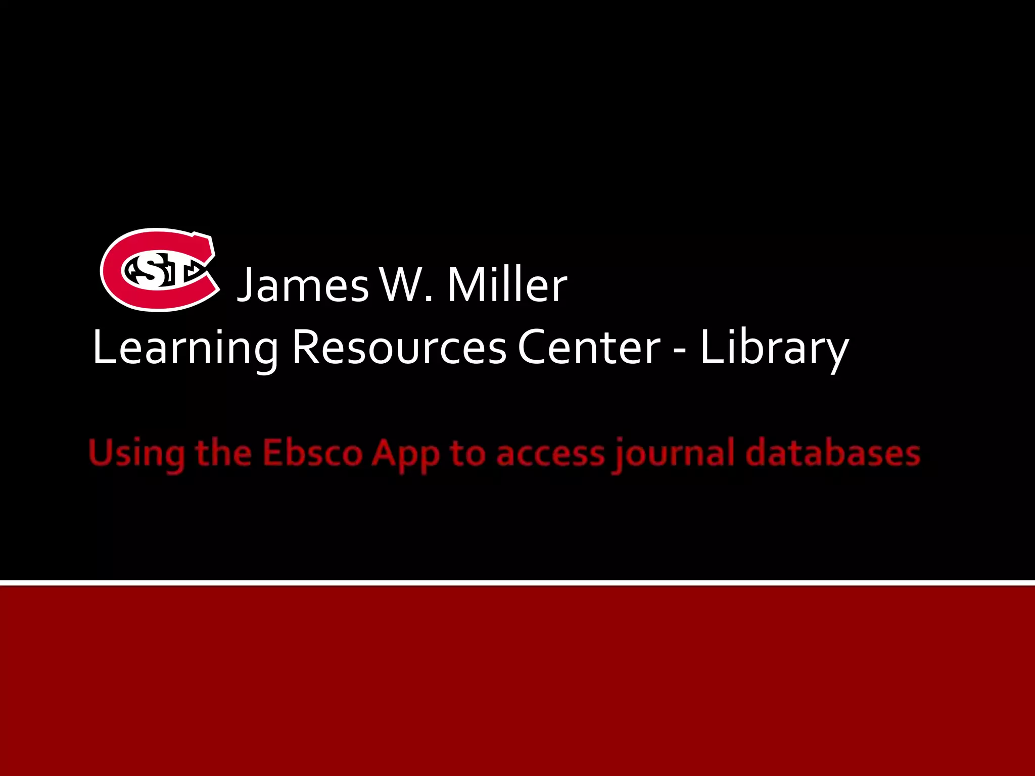 The document provides information on accessing journal databases owned by SCSU using the EBSCO app, available for iPhones, iPads, and Android devices. Users can download the app from app stores and follow specific steps to access databases like Academic Search Premier and others. For assistance, Cindy Gruwell, a faculty librarian, is available via email.