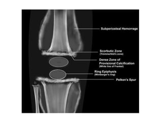 - Diagnosis is based on low vitamin C blood levels and x-ray findings of bone changes like the white line of Fraenkel. Treatment involves vitamin C supplementation in doses of at least 200mg daily until recovery is complete.