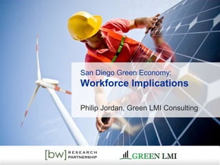 The document discusses several studies on the green economy and its workforce implications for the San Diego region. Some key findings include: