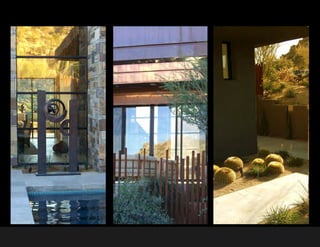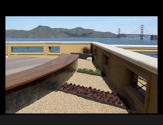 Suzman Design Associates is a landscape architecture firm based in San Francisco. Their mission is to design beautiful, functional, and restorative landscapes that reflect their settings' unique characteristics. They create modern landscapes emphasizing structure, materials, spatial continuity, and transparency between indoor and outdoor spaces. Their collaborative process focuses on client service, teamwork, consensus building, and communication. They are known for their attention to details and expertise across different plant ecosystems and materials.