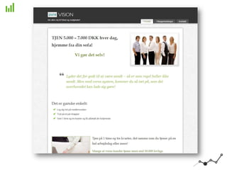 Få 5 gennemprøvede principper til finde dine egne største conversionkillers og dermed en bedre konverteringsrate på din hjemmeside. Præsentationen indeholder en hel række praktiske eksempler og cases, der viser hvordan principperne kan anvendes i praksis.