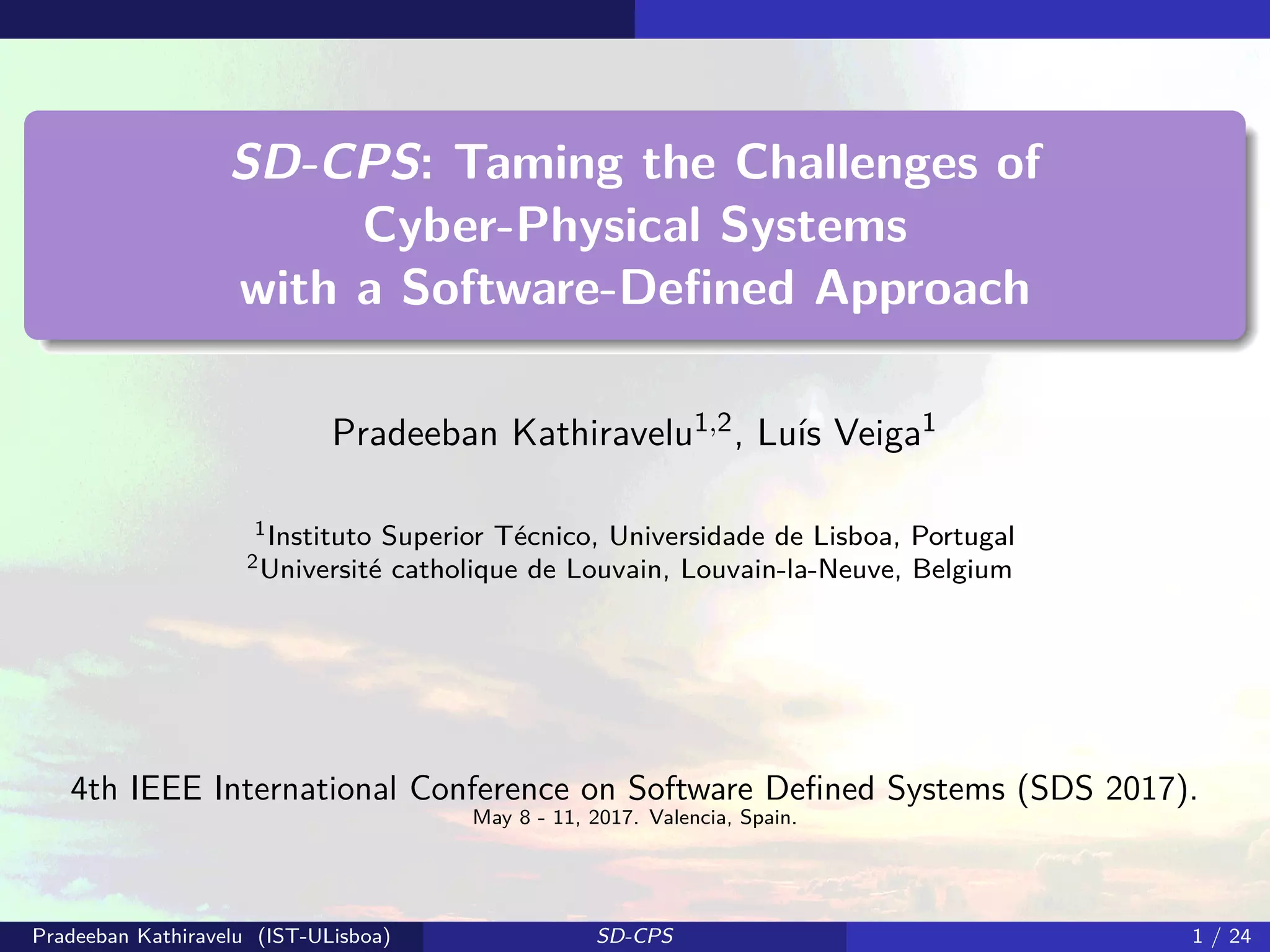 This document proposes a software-defined approach called SD-CPS to address the challenges of cyber-physical systems (CPS). SD-CPS introduces a centralized control plane that manages both the physical devices and a virtual representation of the CPS. This provides unified control, improved quality of service and resilience, and reduces effort in modeling complex CPS. The prototype implementation demonstrates increased controller performance and orchestration capabilities. Future work aims to improve resource efficiency, security, and cost management of large-scale CPS using this approach.
