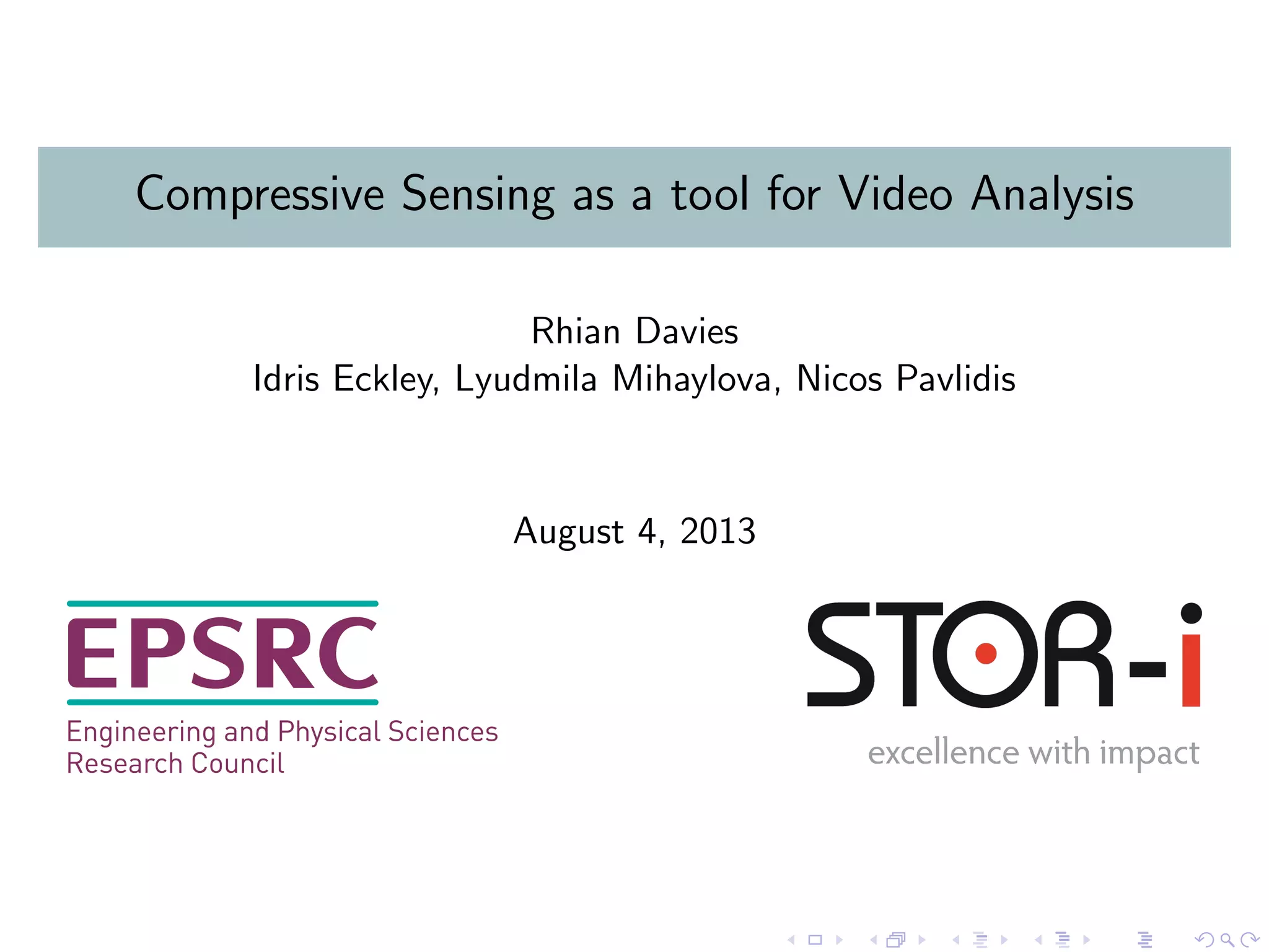 Compressive sensing is a method to reduce the amount of data collected from a signal while still allowing accurate reconstruction later. It works by taking measurements using a matrix that satisfies the restricted isometry property. Sparse signals can be recovered using optimization techniques that minimize the l1 norm. Compressive sensing can be applied to background subtraction in video analysis by compressing the background model and reconstructing the difference between current and background frames to identify foreground objects. Further work includes optimizing the measurement matrix and reconstruction method and adapting to varying sparsity in video frames.