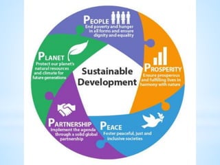 The document presents an overview of the Sustainable Development Goals (SDGs), established on September 25, 2015, with 17 goals and 169 targets aimed at addressing global challenges by 2030. It highlights India's role in implementing these goals, particularly Goal 3 which focuses on ensuring healthy lives and well-being for all. Key challenges include improving health metrics, addressing maternal and child mortality, and combating communicable diseases, all of which require integrated approaches and significant funding.