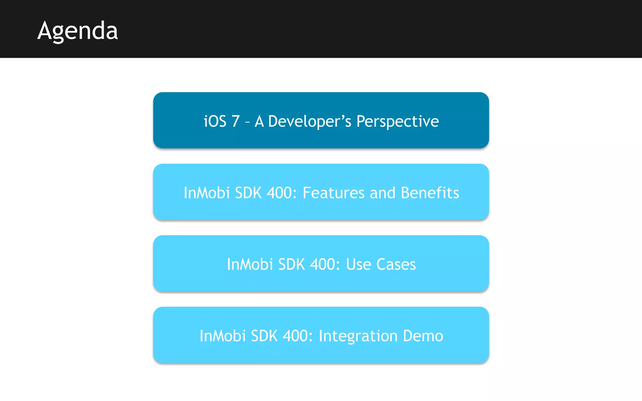 The document discusses the InMobi SDK 400 and its features designed to enhance mobile app monetization, particularly in relation to iOS 7's updates. It highlights the improved user experience, new ad formats, and built-in analytics for better tracking and targeting of user engagement. The SDK aims to help developers maximize revenue through effective ad strategies and user segmentation without requiring extensive integration efforts.